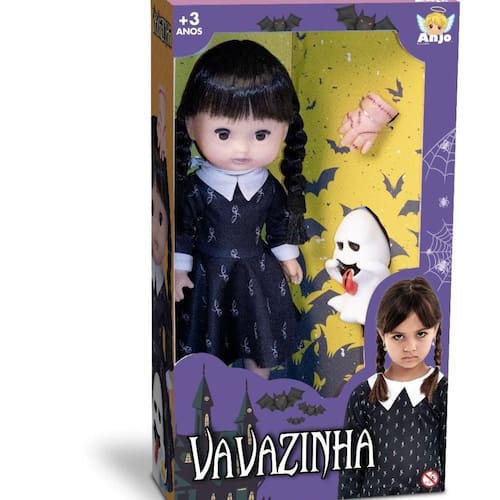 Boneca vavazinha com mãozinha e fantasminha inspiração série wandinha Boneca vavazinha com mãozinha e fantasma inspiração séria wandinha essa boneca inspirada na wandinha, veio para tornar suas brincadeiras ainda mais divertidas. Feita com ricos detalhes da personagem, com franjinha e roupinha toda preta, traz todo encanto e diversão que encontramos na série. A boneca tem 30cm de comprimento com corpinho emborrachado e articulado, feita em borracha macia não trás riscos em machucar a criança. além disso, vêm acompanhada de sua amiga inseparável, a mãozinha e também com um fantasminha, ambos feitos em borracha macia, deixando a brincadeira ainda mais completa. Solte a imaginação e leve sua companheira para onde for. fabricados com materiais de alta qualidade, essa boneca é durável e resistente para garantir muitas horas de diversão.Especificações:material: polietileno, vinil e roupa em tecido tamanho: boneca - 31cm altura x 13cm largura / mãozinha - 5,5cm altura x 2,5cm largura / fantasminha - 10cm altura x 6cm largurapeso: 350g aprox.Idade: acima de +3 anos inmetro ce-bri/qb 4115nm 300/2002 Inspiração da série wandinha contém:01 boneca vavazinha com mãozinha e fantasminha Marca: Não Informado Ean: 7898064927462