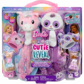 Barbie Cutie Reveal entrega uma coleção dos sonhos cheia de surpresas para descobrir. Cozy Cute Tees Festa do Pijama vem com duas bonecas Cutie Reveal articuladas, Barbie "Malibu" e Barbie "Brooklyn", dois bichinhos de estimação e muita diversão para a festa do pijama ser completa! Detalhes: • Revele as bonecas removendo as cabeças macias de unicórnio e panda e descubra seus visuais completos sob os sacos de dormir. • Cada boneca tem uma blusa de dormir com um ícone supermacio e costurado e peças temáticas dentro dos saquinhos misteriosos, só esperando para serem encontradas: as crianças descobrirão mais de 35 surpresas no total • São 19 acessórios para contar histórias, como pipoca, elásticos de cabelo e máscaras faciais, além de transformações com mudança de cor • Abra os saquinhos misteriosos e encontre acessórios com tema noturno e peças para contar histórias que incluem minifiguras de unicórnio e panda. Vire as cabeças das fantasias para baixo para criar caminhas aconchegantes para os bichinhos de estimação e pronto – bons sonhos! • Utilize água gelada para ativar as maquiagens de estrelinhas no rosto das bonecas e "abra" os olhos dos minibichinhos de estimação. Utilize água morna para desfazer as mudanças e fazer tudo de novo! • Inspire diversão com estilo e muitas histórias: pegue a pipoca e assista a filmes, arrume os longos cabelos das bonecas com o pente e as tiaras com orelhinhas de animais, coloque os minibichinhos de estimação em seus sacos de dormir e deixe a imaginação sonhar • Inclui 2 bonecas Barbie Cutie Reveal, cada uma com uma cabeça macia de animal, saco de dormir, pijama, mais 2 minibichinhos de estimação que mudam de cor, 2 pares de chinelos, 2 tiaras, 2 elásticos de cabelo, 1 bandeja, 1 balde de pipoca, 2 cupcakes, 2 copos, 1 jarra, 2 escovas de dentes, 1 pasta de dente, 2 máscaras faciais, 1 pente e 2 sacos de dormir para os bichinhos de estimação. Informações: • Produto: Conjunto Barbie Cutie Reveal Festa do Pijama Cozy Cute Tees • Marca: Mattel • Coleção: Barbie Cutie Reveal • Serie: Festa do Pijama (Cozy Cute Tees) • Personagens: Malibu e Brooklyn • Tipo: Conjunto de Bonecas com Acessórios • Categoria: Bonecas e Cia • Tamanho (Altura): Bonecas 30 cm aprox. • Conteúdo: - 02 bonecas Barbie Cutie Reveal - 02 sacos de dormir - 02 pijamas - 02 minibichinhos de estimação que mudam de cor - 02 pares de chinelos - 02 tiaras - 02 elásticos de cabelo - 02 cupcakes - 02 copos - 02 escovas de dentes - 02 máscaras faciais - 02 sacos de dormir para os bichinhos de estimação. - 01 pasta de dente - 01 pente - 01 jarra - 01 bandeja - 01 balde de pipoca • Recomendação: para crianças a partir de 03 anos de idade Especificações: • Modelo: Barbie Reveal Cutie Festa Do Pijama 2 Pack • Referência: HRY15 • Código de Barras: 194735188574 • Embalagem (C x A x L): 35.5 x 32.2 x 08 cm • Embalagem (Peso): 0.730 kg • Material / Composição: Plástico e Tecido • Registro: 005012/2021 • Certificado: Órgãos Autorizados - OCP´S (Organismos de Certificação de Produtos) Aviso: • As imagens são meramente ilustrativas • Os pesos, tamanhos e medidas são aproximados • As cores e estampas dos produtos podem ter variações • As informações são de responsabilidade do fabricante ou fornecedor