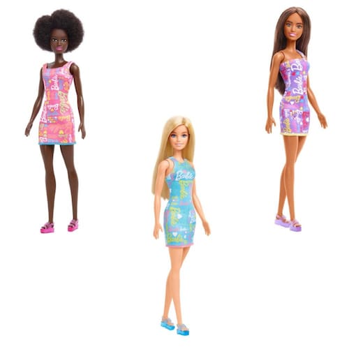 Barbie Bonecas fabulosas com assinatura no vestido em azul, roxo e rosa (pacote com 3). Estas bonecas Barbie tiram a imaginação usando vestidos exclusivos com estampas coloridas do logotipo da Barbie Um par de sapatos combinando adiciona outro toque de cor brilhante. Escolha entre bonecas com visuais únicos e uma variedade de tons de pele, cores de olhos, cores de cabelo e estilos. As crianças podem contar todos os tipos de histórias, do dia à noite, porque quando uma garota brinca com a Barbie, ela imagina tudo o que pode se tornar! Cada boneca tem aproximadamente 29 cm de altura. A partir de 3 anos. - Barbie Bonecas fabulosas com assinatura no vestido em azul, roxo e rosa (pacote com 3) - Barbie Boneca social estampada com logotipo Blue Barbie HGM59 - Barbie Boneca social com estampa de logotipo Pink Barbie HGM58 - Barbie Boneca social roxa com logotipo Barbie HGM57