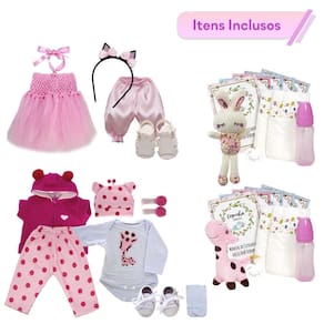 Bonecas Bebê Reborn Gêmeas Girafinha Coelhinha Enxoval 28 Itens - Cegonha Reborn Dolls As Bonecas Bebê Reborn Gêmeas Girafinha Coelhinha são o sonho de todas as meninas! Produzidas pela renomada marca Cegonha Reborn Dolls, essas bonecas são feitas com vinil siliconado atóxico de alta qualidade, garantindo a melhor experiência para as crianças. Com seus detalhes realistas e olhos castanhos encantadores, as Bonecas Bebê Reborn Gêmeas são irresistíveis. Elas podem sentar, deitar e fazer tudo o que a imaginação permitir. Com membros articulados e corpo de silicone, essas bonecas são muito próximas da realidade. Medindo aproximadamente 46cm de altura e pesando cerca de 0,745kg, as Bonecas Bebê Reborn Gêmeas são perfeitas para crianças maiores de 03 anos. Elas vêm acompanhadas de um conjunto de roupa girafinha e um conjunto de roupa coelhinha, além de dois pares de cílios, dois pares de brincos, duas chupetas, duas mamadeiras simples, dez certificados, quatro fraldas, um par de sapatinhos e um par de sandalinhas. E para deixar tudo ainda mais especial, as bonecas vêm acompanhadas de duas pelúcias . Essas bonecas são certificadas pelo INMETRO, garantindo a sua segurança e qualidade. Elas não emitem nenhum som e podem ser banhadas, pois o material do corpo é de silicone. Vale ressaltar que os olhos das bonecas não podem ser escolhidos, pois já vêm de fábrica. Garanta agora mesmo as Bonecas Bebê Reborn Gêmeas Girafinha Coelhinha com enxoval completo de 28 itens e proporcione momentos de diversão e encanto para as crianças. Compre já e experimente a diferença de adquirir um produto de alta qualidade com a nossa loja. Palavras-chave: Reborn, Realista, Menina, Infantil, Silicone, Princesa, Linda, Morena, Loira, Fofa, Banho, Enxoval, Completo, Grande. Homologação Inmetro: CE-BRI/IQB 006042 54693/21-001