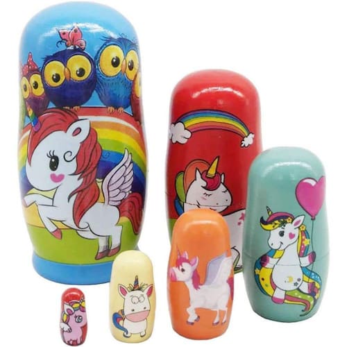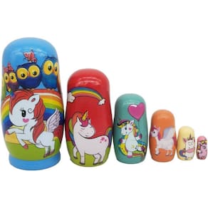 Cute Shape Seis diferentes bonecas de unicórnio, boas para coleção e decoração. Boa Escolha Feita a partir de madeira, robusta, leve e durável qualidade a partir dos 14,5x7cm mais altos. As crianças vão adorar brincar com elas, aproveitar a diversão de desmontá-las e remontar. Pintado à mão com eco-friendly e pinta um por um. lmente seco e selado com saco plástico. Todos eles são pintados com grandes detalhes, tornando-os visualmente impressionantes em diferentes ângulos. Presente multifuncional Um presente especial para o natal, dia dos namorados, aniversário e outros horários do festival. Você também pode decorar sua casa ou quarto com tais artesanatos bonitos. Também ser para segurar joias, sundries, doces, etc. Fácil de Abrir - Adulto / crianças são capazes de abrir e fechar essas bonecas de madeira aninhadas sozinhas. Por favor, note, como é produto de madeira, ele vai afetar pelo tempo. Se é difícil abrir o grande, então, por favor, use a vela para soltá-la.