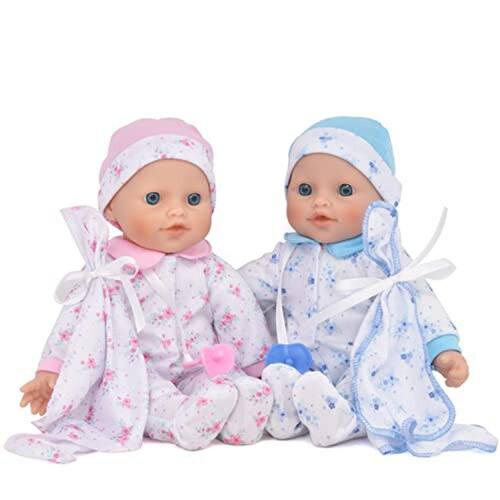 O conjunto mais adorável de gêmeos! Soft Body 12 "Menina e Menino Baby Dolls, o tamanho perfeito para abraçar, abraçar, viajar, hora de dormir e muito mais. Presenteie seu pequeno com um amigo que ele aprenderá a valorizar e amar. Desenvolva a imaginação do seu filho, fazendo-o tocar, segurar e interagir fisicamente com os bebês. Ensina-os a encenar a criação, o amor e o cuidado. Todos os nossos produtos são submetidos a testes rigorosos para garantir um jogo seguro e divertido.