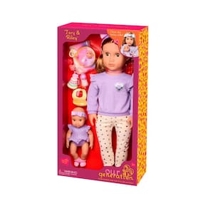 As bonecas Our Generation Tory e Riley são perfeitas para crianças que adoram brincar de cuidar e imaginar histórias cheias de amor. A Tory é a irmã mais velha, sempre pronta para cuidar da pequena Riley, sua adorável irmã bebê. Juntas, elas formam uma dupla encantadora, com roupas combinando em tons pastel e acessórios que tornam a brincadeira ainda mais completa. A Tory vem com uma linda tiara com laço, blusa lilás estilosa com detalhes nos ombros, calça com estampa de corações e sapatinhos. Já a Riley usa um body roxo com babadinhos e uma faixa de cabelo combinando, trazendo ainda mais charme ao conjunto.