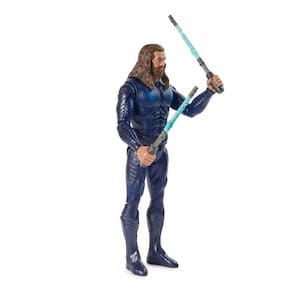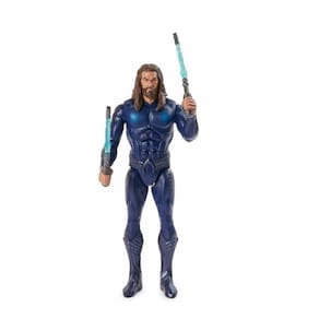 O Boneco Aquaman 30Cm Ataque Duplo possui uma característica especial: ao movimentar os braços do boneco com o dispositivo localizado em suas costas, os bastões do Aquaman acendem, tornando a brincadeira ainda mais realista e divertida.
