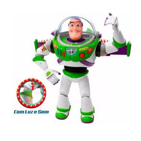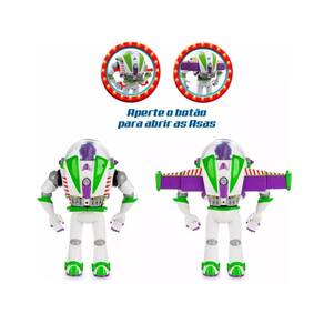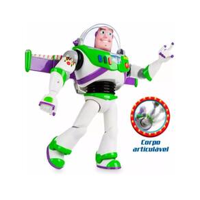 Equipado com luzes no traje espacial e 10 sons inspirados no famoso personagem, ele recria momentos marcantes do filme. Ao pressionar os botões, é possível ouvir frases e efeitos sonoros autênticos de Buzz, além de iluminar partes de sua armadura, como a base de sua cintura e as asas. A qualidade e os detalhes da figura, com seu traje espacial, capacete e acessórios, tornam o boneco uma excelente escolha para crianças e adultos que desejam reviver as aventuras intergalácticas de Buzz Lightyear.