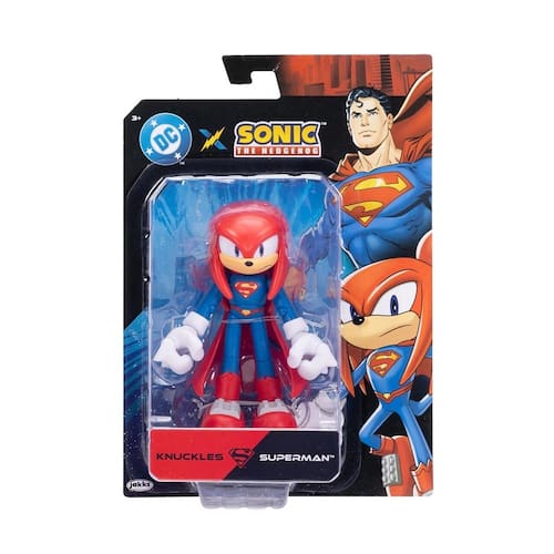 Uma explosão cósmica joga os personagens de Sonic no universo da Liga da Justiça. Perdidos entre realidades, eles vestem os mantos dos maiores heróis para restaurar o equilíbrio multiversal. Knuckles vira o Superman, Dr. Eggman assume Lex Luthor, Rouge incorpora a Mulher-Gato e Silver canaliza o Lanterna Verde. Cada figura traz mais de 5 pontos de articulação para poses dinâmicas, com uniformes que mesclam dois universos lendários. Quatro personagens, vendidos separadamente.