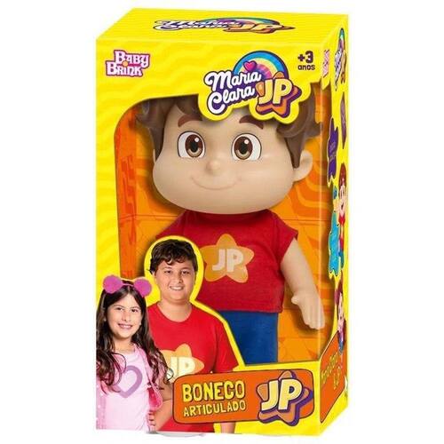 JP e Maria Clara são os irmãos mais fofos de todo o YouTube Com mais de 7 milhões de inscritos no canal, já estava mais do que na hora de a dupla sair da telinha pra ficar ainda mais próxima da galerinha, né O Boneco do J.P está vestindo uma bermudinha na cor azul, camisetinha na cor vermelha com as iniciais do nome dele estampadas no centro de uma estrelinha. Está calçando um lindo par de tênis na cor azul super estilosos