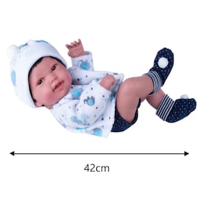Boneco Anny Doll Baby Menino Reborn Collection 2440 O bebezinho mais fofo e cheiroso para deixar suas brincadeiras muito mais divertidas! Seu boneco Anny Doll Baby Menino, é todo personalizado como um bebezinho de verdade, no estilo reborn, possui cabelo macio, cílios, detalhes de sobrancelha, detalhe de babinha no canto da boca, fazendo parecer muito mais realista, dobras nas mãozinhas e pezinhos, seu corpinho é todo de vinil macio e perfumado. A roupinha é uma fofura, toda personalizada e macia, seu bebezinho ainda vem com uma fraldinha, certidão de nascimento e carteirinha de vacinação em uma linda caixa decorada e perfumada. Detalhes perfeitos feitos a mão, chame as amigas, amigos, família e divirta-se em qualquer lugar!! Informações: - Código De Barras: 7896964624429 - Código: 2440 - Marca: Cotiplás - Modelo: Boneca Anny Doll Baby Menino - Material: Vinil - Altura Aproximada: 42 cm Conteúdo: - 1 Boneca - 1 Certidão de Nascimento - 1 Certidão de Vacinação - 1 Fralda