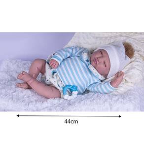 Boneca Reborn Cotiplas Classic Menino Roupa Azul e Touca