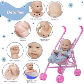 Boneco Bebe Reborn Menino Realista Com Carrinho Pijama Azul