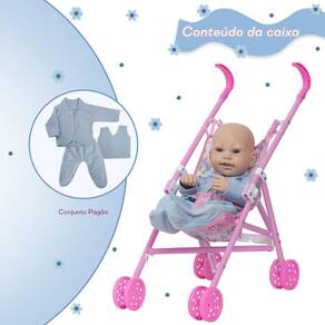 Dúvidas Frequentes: 1. Ele acompanha Itens? R: Sim, o Boneco Bebê Reborn Luca acompanha um conjunto de pijama azul e um carrinho infantil.