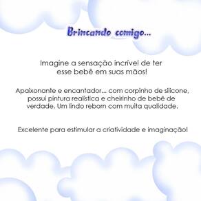 Tags: Boneca, Bebe, Reborn, Realista, Menino, Infantil, Silicone, Principe, Lindo, Morena, Loira, Fofa, Banho, Enxoval, Completo, Grande, Baby Alive, Menina.