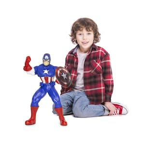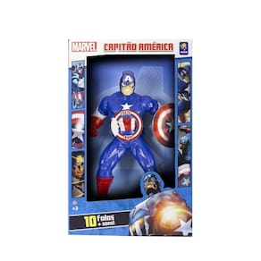 Utilize o Boneco Capitão América com Frases em brincadeiras temáticas com outros personagens da Marvel
