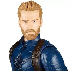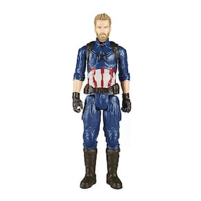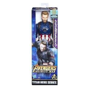 Imagine o Primeiro Vingador entrando em ação com a figura do Capitão América em escala de 12 polegadas da série Titan Hero, inspirado no filme Avengers: Infinity War. Esta figura inclui uma porta para o pacote Titan Hero Power FX (não incluído; vendido separadamente com os bonecos Titan Hero Power FX) para que quando as crianças conectem o pacote, elas possam fortalecer sua figura e ativar sons e frases específicos de personagens de Vingadores: Infinito Guerra!