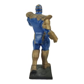Boneco Thanos Resina Estátua Filme Thanos é um personagem fictício, um supervilão das histórias em quadrinhos publicadas pela Marvel Comics, inspirado em Thanatos. O personagem apareceu pela primeira vez em Iron Man 55 fevereiro de 1973 e foi criado pelo escritor-artista Jim Starlin, que admitiu ter se inspirado no visual de um vilão da DC Comics, Darkseid. Desde então, Thanos tem sido destaque em mais de quatro décadas de continuidade do Universo Marvel e em uma série de histórias em quadrinhos auto-intitulada. O personagem é descrito geralmente como um Titã louco, já que, apesar de ser poderoso, ele era rejeitado pelos outros por causa de sua aparência e ambição. Thanos aparece em alguns filmes do Universo Cinematográfico Marvel, inicialmente com uma participação especial durante as cenas pós-créditos de Os Vingadores 2012 . Josh Brolin interpreta o personagem em Guardiões da Galaxia 2014 e em Vingadores: Era de Ultron 2015 ; e é o antagonista principal nos filmes Vingadores: Infinita 2018 e Vingadores: Ultimato 2019 . Altura 20 cm Largura 6 cm Profundidade 6 cm Peso 384 g Informações importantes: Choques ou quedas podem trincar ou quebrar o produto Inmetro: Não se aplica