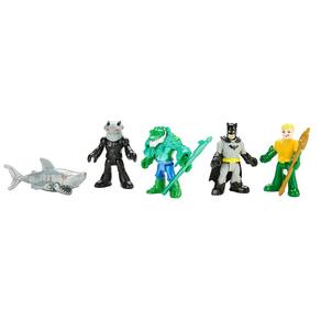 Boneco de ação Fisher-Price Friends Imaginext DC Super Heroes & Villains — Pacote de bonecos de heróis versus vilões — Mocinhos versus bandidos — Ajuda a inspirar a imaginação e incentivar a dramatização — Inclui boneco do Batman, boneco K. Croc com lança e “correntes”, boneco do Aquaman com tridente e boneco da Manta Negra com Robo Shark - Um ótimo complemento aos conjuntos de brinquedos Imaginext existentes para seu filho