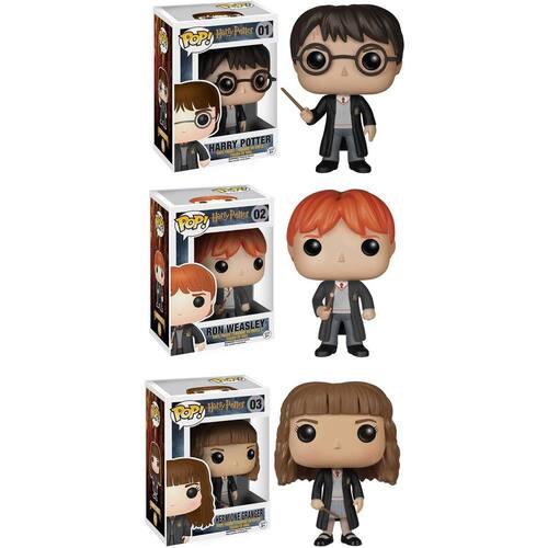 Funko Harry Potter POP! Conjunto de colecionadores de vinil para filmes: bonecos de ação de Harry Potter, Ron Weasley e Hermione — O pacote Harry Potter inclui Harry Potter, Ron Weasley e Hermione — Cada boneco vem embalado individualmente — POP! Os bonecos de vinil são ideais para todos os fãs de Harry Potter!