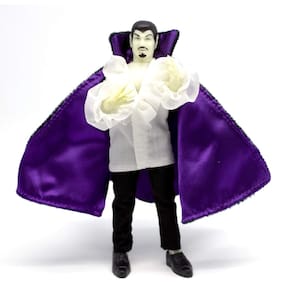 Mego Action Figures, Drácula Mego que brilha no escuro de 20 cm com capa roxa (edição limitada do item de colecionador)