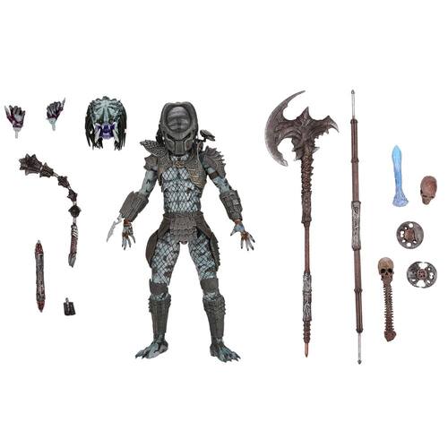 NECA - Boneco Predator 2: Warrior Predator Ultimate de 18 cm - Edição especial: o Predator 2 Ultimate Warrior é um boneco de plástico de 18 cm que vem carregado com uma variedade de acessórios - Acessórios: O Predator 2 vem com acessórios que incluem uma cabeça alternativa sem máscara, mãos intercambiáveis, lanças abertas e fechadas, machado de batalha, mangual, discos de arremesso abertos e fechados, caveira com coluna, lâminas de pulso extensíveis, efeito de explosão anexável para o canhão de ombro e muito mais - Embalagem: Vem em uma embalagem especial para exibição de 30 anos que tem uma aba frontal de abertura e detalhes de alumínio - Articulação: Possui mais de 30 pontos de articulação - Idades: Para maiores de 15 anos
