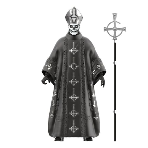 Super7 Deluxe Ghost Papa Emeritus II - Boneco fantasma de 18 cm com acessórios colecionáveis clássicos de heavy metal e brinquedos retrô - Boneco de ação GHOST Super7 - A segunda encarnação do vocalista da banda de heavy metal Ghost Papa Emeritus II se une ao Super7 ULTIMATES! linha de bonecos de brinquedo de ação - Acessórios prontos para metal: este boneco vem com um roupão macio e acessório de equipe com detalhes Grucifix, permitindo que você imortalize músicas icônicas pelo catálogo da banda de rock pesado - Figura de ação de 17,8 cm: o boneco Papa Emeritus II está em escala de 18 cm com o resto da linha de bonecos DELUXE Ghost - Figuras de ação premium: nossos bonecos de ação de luxo capturam os principais detalhes do personagem com escultura complexa, articulação completa, acessórios essenciais e nova embalagem de cartões; com Mighty Morphin Power Rangers, Conan, o Bárbaro e muito mais - Brinquedos e bonecos colecionáveis: de bonecos TMNT e G.I. Baralhos de skate Joe para lembranças de Power Rangers e brinquedos Toho Godzilla, a Super7 faz os colecionáveis retrô perfeitos, brinquedos vintage e presentes de nostalgia para fanáticos e colecionadores da cultura pop – presentes para Páscoa, aniversários ou Natal