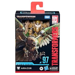 Transformers Studio Series Deluxe Class 97 Airazor Toy, Rise of The Beasts, 4,5 polegadas, boneco de ação para meninos e meninas a partir de 8 anos - TRANSFORMERS Classe de luxo da série estúdio: estes bonecos colecionáveis de 11,4 cm inspirados em cenas icônicas de filmes e projetados com especificações e detalhes para refletir o universo do filme Transformers - AIRAZOR EM ESCALA DE 10 POLEGADAS: O boneco Airazor da Transformers Studio Series 97 para meninos e meninas é altamente articulado para facilitar a colocação e apresenta detalhes inspirados no filme - 2 modos icônicos: este brinquedo Transformers para meninos e meninas de 8 anos apresenta uma conversão clássica entre os modos robô e falcão peregrino em 23 passos - Acessórios incríveis: o boneco Transformers vem com 2 acessórios de lançador de fótons que se prendem à figura do Airazor em ambos os modos - Fundo removível: o pano de fundo removível exibe a figura do Airazor na cena Peruvian Jungle Discovery. Os fãs podem usar o pano de fundo e posar suas figuras na cena com seu próprio estilo