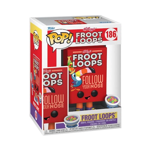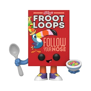 - Leve para casa um lanche favorito, Froot Loops, como um divertido Funko Pop, uma adição deliciosa a qualquer coleção de ícones de anúncios.