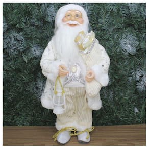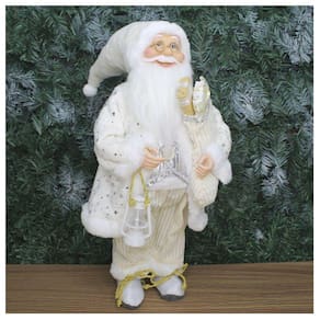 Boneco De Natal Papai Noel Tecido Lampião 45cm - O Natal é tempo de celebrar o amor, comemorar a vida com novas esperanças, novos sonhos e também é a hora de deixar a casa mais bonita para receber a família nesta data tão importante. Você poderá realizar um Natal com toque de charme e bom gosto que contagiará seus convidados com o espírito natalino, deixando a sua casa decorada de uma forma diferente e apropriada para a data mais esperada do ano.Especificações:Uso: Decoração NatalinaMaterial: Plástico, TecidoCor: Bege, DouradoTamanho: 45 CmContém: 1 unidadeCaracterísticas Gerais do Produto:Garantia: Garantia do site - 1 Mês Marca: Gici Christmas