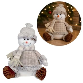 Boneco de Neve Decorativo Sentado em Pelúcia Alpino Branco e Bege 30cm