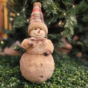-01 Unidade Boneco de Neve Pelúcia Natal Marrom Claro, Gorro e luvas xadrez 39cm