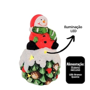 Boneco de Neve Decorativo na Pinha – Resina Iluminada com LED Branco Quente – 14cm