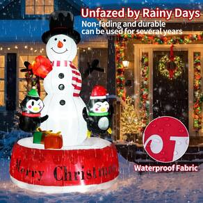 - Infláveis giratórios de Natal Snowman de 8 pés --- Os infláveis de Natal Snowman com caixas de presente coloridas e pinguins divertidos apresentam design giratório, giram para a esquerda e para a direita. Uma forma de espalhar alegria e saudações para sua família, vizinhos e transeuntes. Esse movimento dinâmico adiciona um elemento único e interativo à sua decoração natalina.