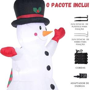 Estabilidade Garantida: Acompanha cabo para fixação ao solo, garantindo que seu Boneco de Neve permaneça firme, mesmo nas noites mais ventosas.