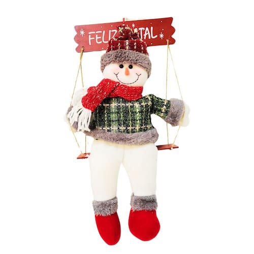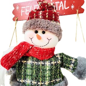 Crie uma decoração única e acolhedora com este Boneco de Neve decorativo em pelúcia sentado em uma charmosa gangorra de madeira, trazendo um toque rústico e encantador para o Natal. Com roupas em tons de vinho, cinza e verde, o boneco exibe um visual aconchegante e tradicional, complementado pela placa com a mensagem "Feliz Natal", que espalha alegria e boas-vindas. Com 43cm de altura, é a escolha perfeita para destacar sua decoração natalina.