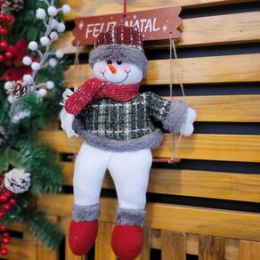 Boneco de Neve Gangorra Rústica e Placa Feliz Natal 43cm