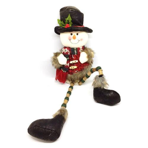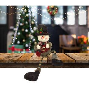 -01 unidade Boneco de Neve Pelúcia Rústico Perna Mole Miçanga Madeira 46cm - Master Christmas