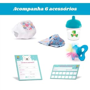 Boneco de Vinil - Diver New Born - Premium - Menino - Divertoys: esse lindo Boneco de aproximadamente 32 cm é um encanto. Com traços realistas e fofos, o Diver New Born Premium tem tudo para ser cuidado perfeitamente. Com o boneco as crianças aprendem valores importantes como cuidado e empatia. Produzido todo em vinil, com cor especial e cheirinho de bebê. Toda a graça da brincadeira de mamãe e filhinho, agora com muito mais charme. Um bebê newborn só seu! Informações: • Produto: Boneco New Born Premium Menino • Marca: Divertoys • Coleção: Diver New Born Premium • Tipo: Boneco com Acessórios • Categoria: Bonecos Bebês • Tamanho: 32 cm (altura) • Conteúdo: - 01 Boneco - 01 mamadeira - 01 fralda - 01 mantinha - 01 certidão de nascimento - 01 carteirinha de vacinação - 01 chupeta com luz • Recomendação: para crianças a partir de 03 anos de idade Especificações: • Referência: 8154 • Código de Barras: 7898639381545 • Embalagem (C x A x L): 42 x 29 x 17 cm • Embalagem (Peso): 1.130 kg • Material / Composição: Vinil, tecido e plástico • Registro: 002 410/2022 • Certificado: Órgãos Autorizados - OCP´S (Organismos de Certificação de Produtos) Aviso: • As imagens são meramente ilustrativas • Os pesos, tamanhos e medidas são aproximados • As cores e estampas dos produtos podem ter variações • As informações são de responsabilidade do fabricante ou fornecedor