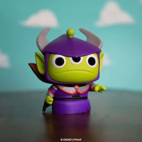 - Comemorando 25 anos desde o lançamento de Toy Story está Alien as Zurg from Toy Story as a Stylized Pop! figura de vinil.