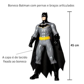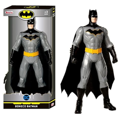 Boneco do Batman 45 cm - Rosita Baby BrinkQuando as forças do mal ameaçaram tomar o controle de Gothan City surgiu o Batman, o super-herói mais inteligente e habilidoso de todos os tempos. Viva todas as aventuras do homem-morcego com a versão boneco desse grande herói. O boneco conta com 4 pontos de articulação, capa fixa de tecido e 45 cm de altura.Especificações:Marca: Rosita - Baby BrinkModelo: Boneco Batman 45 cmReferência do Fabricante: 1096Idade Recomendada: A partir de 3 anosMaterial: Vinil com essência e fibra têxtilCertificado INMETRO: Compulsório Registro 0004582/2019Itens Inclusos:1x Boneco Batman 45 cm