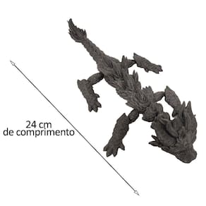 Boneco Dragão de Fogo Articulado 24 cm Impressão 3D Grafite Metálico