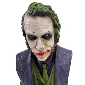 Boneco Busto Coringa Heath Ledger em resina, com 13cm de altura.