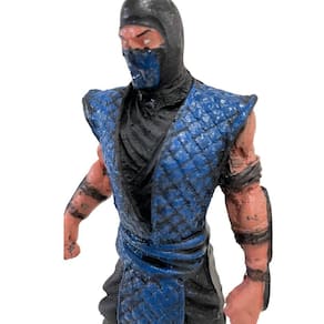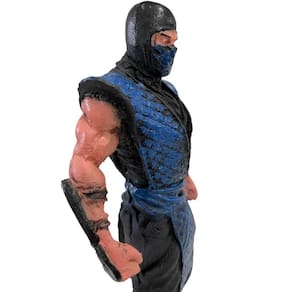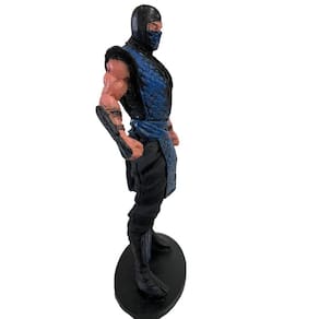 Boneco Heroi SubZero Mortal Kombat em resina, com 19cm de altura.