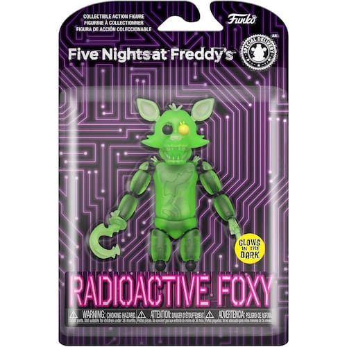 Os animatrônicos mais aterrorizantes dos games chegaram em peso na Collections em versão Funko Action! Eles são bonequinhos articulados, fáceis de mover e leves, podendo ser colocados na posição que preferir! A galerinha de Five Nights at Freddy's está presente por aqui em várias versões diferentes, prontos para aterrorizar sua coleção com estilo! Nesta edição Funko Action Five Nights at Freddy's, Foxy está em sua versão Radioactive