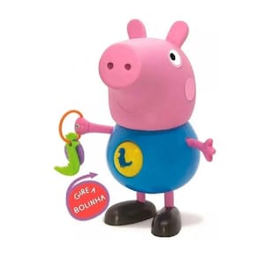 Brinque com o super boneco do George. Boneco com 22 cm de altura, bolinha que gira na barriguinha, e os brinquedos preferidos dele na mãozinha.