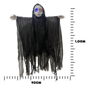Os vizinhos e parentes ficarão impressionados com o Boneco Halloween Pendurado Criança Fantasma Som e Luz, com seu rosto tão realista e suas belas tranças. O fio de suspensão permite colocá-lo em qualquer lugar da casa, como na varanda ou na sala, criando uma atmosfera de mistério e terror que encantará todos os convidados.