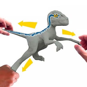 Realista e tão elástico! Azul o Velociraptor se estica até 3 vezes o seu tamanho!