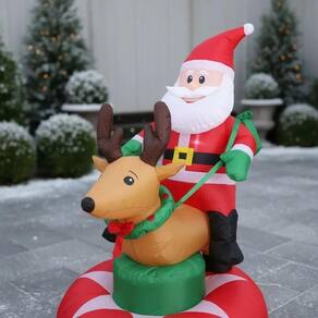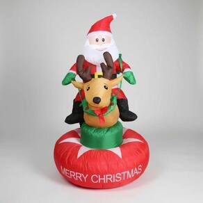 Transforme sua decoração natalina em um verdadeiro espetáculo de luz e alegria com este Papai Noel inflável gigante de 1 Metro e 80cm montado em uma linda rena iluminada por LEDs brilhantes!