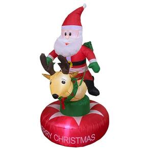 Transforme sua decoração natalina em um verdadeiro espetáculo de luz e alegria com este Papai Noel inflável gigante de 1 Metro e 80cm montado em uma linda rena iluminada por LEDs brilhantes!