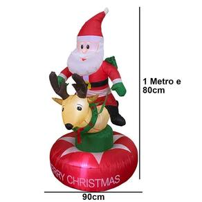Crie momentos inesquecíveis com a presença mágica deste Papai Noel inflável na rena com LED. É impossível não sorrir ao vê-lo iluminando sua decoração e encantando adultos e crianças!