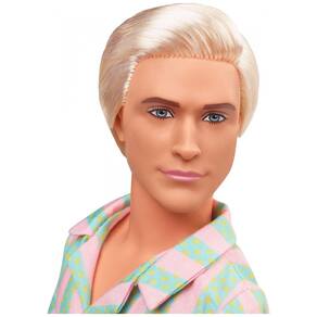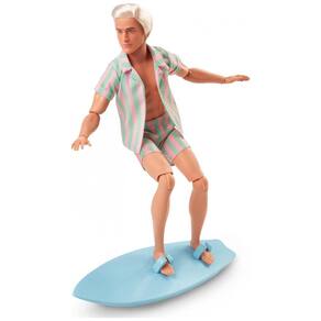 O boneco Ken Barbie The Movie traz o visual praiano do personagem no filme, com look listrado em tons pastel e prancha de surf. Ele usa camisa aberta com listras em rosa pastel e verde menta e shorts combinando com bolsos funcionais. O visual é completado por tênis brancos e cabelo loiro platinado, em estilo despojado de praia. ? O boneco possui corpo articulado e acompanha prancha de surf temática para compor poses e cenas de Barbie Land. A embalagem é própria para exibição, pensada para fãs e colecionadores, sendo indicada para maiores de 3 anos.