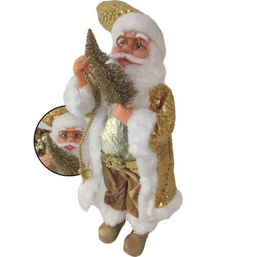 Este é um boneco do papai noel de 45cm de altura, com incriveis detalhes em sua vestimenta, rosto e até os adornos que o mesmo carrega. Ele tem em sua mão uma linda arvore dourado e carrega um saco repleto de presentes e enfeites.
